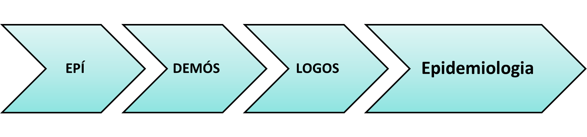 A origem etimológica da palavra epidemiologia é a seguinte: Epí, que significa “sobre” + Demós, que significa “povo” + Logos, que significa “palavra, discurso, estudo”. Portanto, a epidemiologia é a ciência do que ocorre no povo. Veja o esquema a seguir: