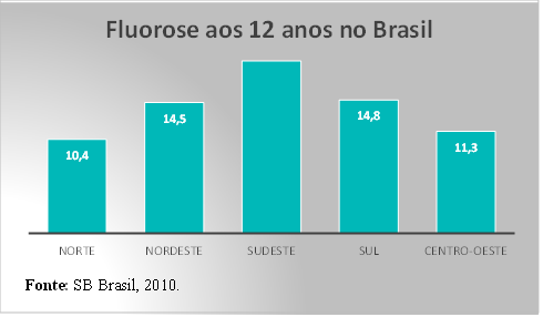 Figura 4 - Distribuição percentual de crianças de 12 anos com fluorose no Brasil por regiões