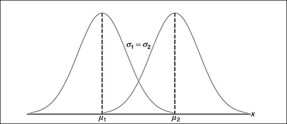 Figura 6 - Duas amostras com médias diferentes e com desvios-padrão semelhantes