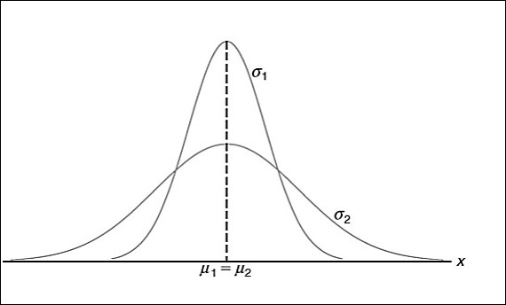 É importante salientar que não há apenas uma curva normal. Para cada valor diferente da média e do desvio padrão, há uma curva normal diferente. Sabe-se que a alteração da média muda a posição da distribuição dos dados, e a alteração do desvio-padrão modifica o padrão da dispersão dos dados (Figura 3 e 4).
